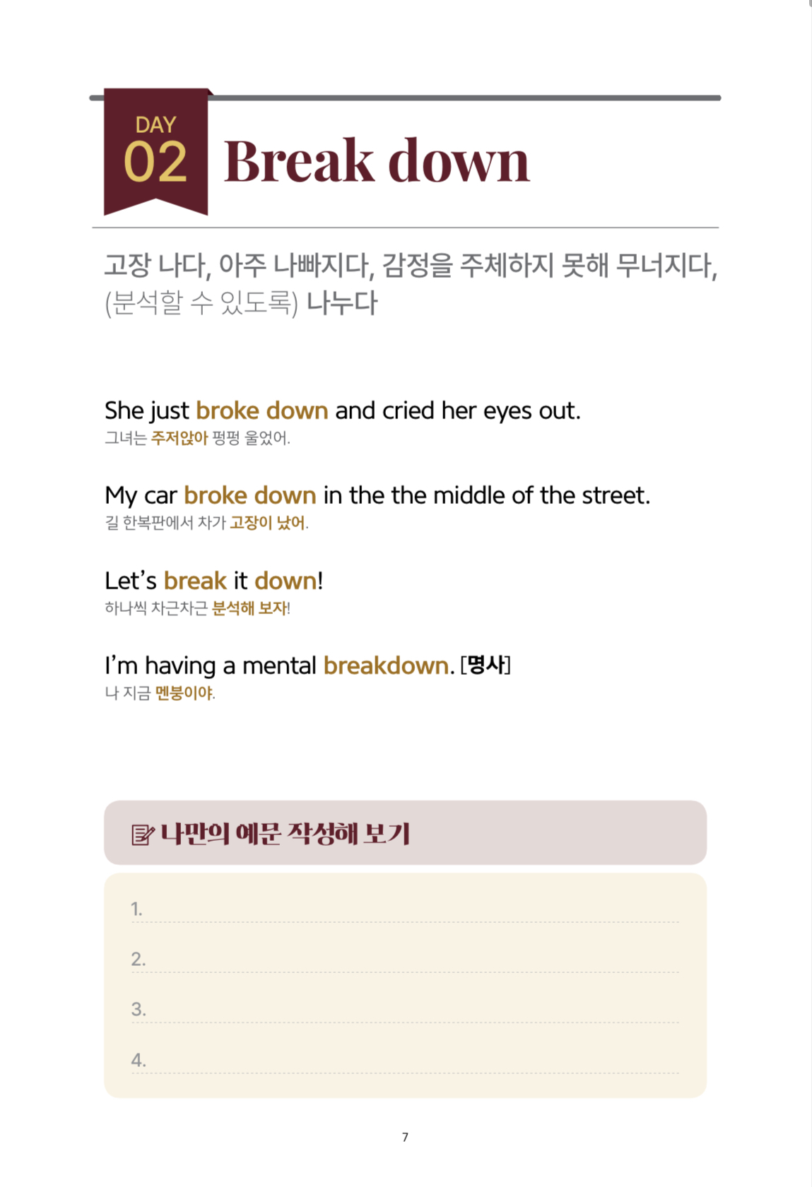 - ✍️ 구동사별 예문 4개씩 → 총 400개 예문