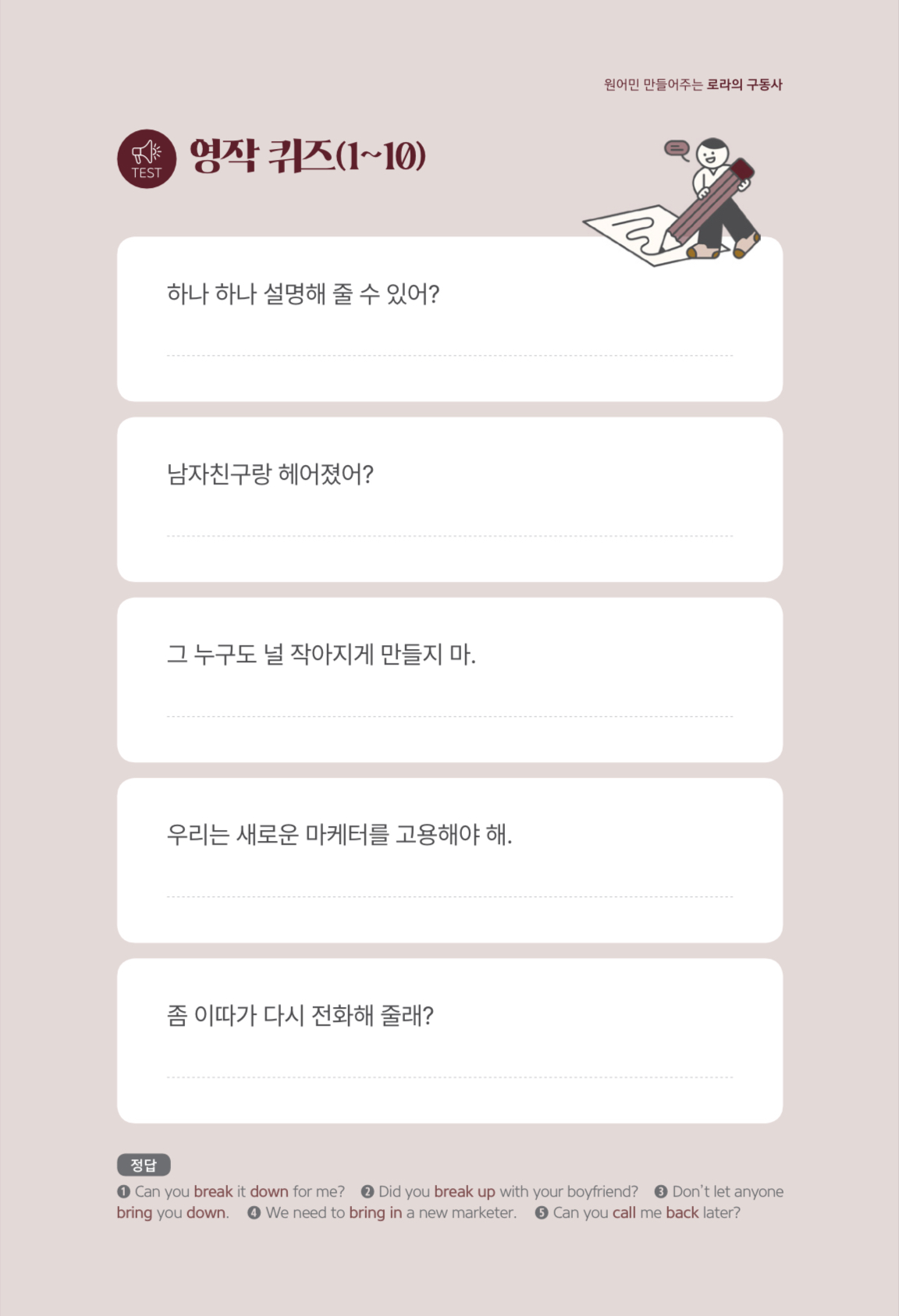 → 배운 구동사를 활용해 직접 영작 ✍️